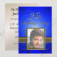 Eine elegante Party Einladung für einen Mann mit einem goldenen Rahmen für sein Foto. Fügen Sie ein Bild des Geburtstags hinzu, um diese Karte zu personalisieren.