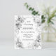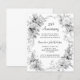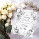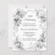 Ein weißer Hintergrund. Mit Blumen und Imitaten verziert, silberfarben. Personalisieren und fügen Sie einen Namen und Details. 1 Blatt = 2 Einladung mit Druckkante bis Kante.