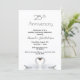 Eine schlichte und elegante Einladungskarte zum 25. Silbernen Hochzeitstag mit Liebe zum Thema. Zwei wunderschöne Schwäne, die ihre Köpfe zusammenbiegen und eine Herzform bilden. Weißer Hintergrund. Vorlagen für Namen und Party. Schwarze Buchstaben. Zurück: abstraktes graues und weißes Muster.