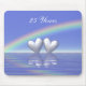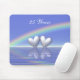 Geben Sie dieses nützliche mousepad als Geschenk mit seinem hübschen Bild von 2 silbernen Herzen, die auf das Wasser unter einen Regenbogen schwimmen. Kundengerechter Text sagt "25 Jahre".
