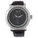 Uhr, Klassische Damenuhr mit schwarzen Lederarmband