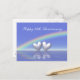 Postcard mit meinem originalen Kunstwerk von zwei Silberherzen, die unter einem Regenbogen auf dem Wasser schwebend, mit individualisierbarem Text, der "Happy 25th Anniversary" sagt.