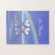 Ein hübsches 3D-Bild von Silberherzen, die unter einem Regenbogen auf dem Wasser schwimmen, mit anpassbarem Text.