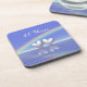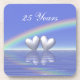 Hübsche Drink-Coaster mit meinem Kunstwerk von Silberherzen, die unter einem Regenbogen auf dem Wasser schweben, mit Text, der "25 Jahre" sagt.