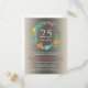 Die Postkarte zum 25. Hochzeitstag lädt Sie mit einem zarten Blumenkranz aus wilden Blume, Pflanze und Schmetterlingen ein. Einladungen können mit Ihren speziellen Informationen zum SilberJahrestag leicht personalisiert werden. Auf der Rückseite der Einladung finden Sie Jubiläumsdaten in einem eleganten weißen Text auf silberfarbenem Hintergrund.