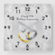 Der 25. Silberne Hochzeitstag ist ein besondere Anlass. Dieses elegante, silberfarbene und attraktive Design macht das ideale Geschenk für das Jubiläumspaar. Silber strukturiert, marmorähnlicher Hintergrund mit zwei Ringen, schwarze arabische Ziffern, die die Stunden markieren, schwarze Linien markieren die Minuten mit 12 schwarzen Herzen dekoriert. Klicken Sie auf den Button "IT BEHERRSCHEN", um die Namen zu ändern, und wählen Sie Ihre bevorzugten Schriftart aus.