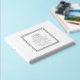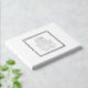 Weißes, einfaches Hochzeitsgast-Buch mit stilisierten, silberfarbenen Foliendrucken in einer silbernen Folie, quadratischer Rahmen mit den Namen des Ehepaares und dem Hochzeitstag. Bearbeiten Sie Ihr Gästebuch, indem Sie Namen und Datum durch eigene ersetzen. Wählen Sie Ihren Gastbuchstil aus.