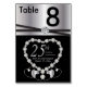 25. Silver Wedding Anniversary Party Tischkarten. HINWEISE ZUM HINZUFÜGEN VON NAMEN/ZAHLEN ZU KARTEN - Schritt 1 Fügen Sie auf der ersten Karte Namen und Nummer hinzu und fügen Sie diese Ihrem Warenkorb hinzu. Schritt 2 - Klicken Sie auf das links Bild und es wird Sie wieder zur Karte zurückführen, damit Sie die zweite Zahl hinzufügen können und sie dann Ihrem Warenkorb hinzufügen können - Wiederholen Sie den Vorgang, bis alle Namen und/oder Zahlen hinzugefügt wurden. Schritt 3 - Auschecken oder weiter einkaufen. ⭐ Dieses Produkt ist zu 100% benutzerdefinierbar. Grafiken und Text können gelöscht, verschoben, verändert, verändert, gedreht usw... ⭐ 99% meiner Designs in meinem Geschäft sind in Schichten gemacht. Damit können Sie die Größe und den Text der Grafik und des Textes so anpassen, dass sie perfekt zu jedem Produkt passen. ⭐ (Bitte vergewissern Sie sich vor der Bestellung, dass Sie die Größe der Grafik ändern oder verschieben) Sie können auch "TRANSFER DESIGN" auf anderen Zazzle-Produkten und passen das Design an die meisten Zazzle-Objekte an. (Schaltfläche ist rechts unten) Einige Textgrafiken sind zum Ausfüllen der Box(n) bereit, oder Sie können auf den "CUSTOMIZE"-Button klicken, um einen der Schriftart oder Grafiken hinzuzufügen, zu verschieben, zu löschen, zu verändern, die Hintergrundfarbe zu ändern oder zu verändern. Das Design wird mit hochauflösenden Vektoren und/oder Digitalgrafiken für einen beruflichen Druck erstellt. ⭐ HINWEIS: (DIES IST EIN DRUCK. Alle zazzle Produktdesigns sind "Drucke", sofern nicht anders unter "Über dieses Produkt"-Bereich angegeben) Das Design wird genau wie Sie es auf dem Bildschirm und auf dem Produkt sehen..also stellen Sie bitte sicher, dass Sie bei der Anpassung der Größe eines Textes oder einer Grafik sicher sind, dass es in die Bereiche passt, und dass Ihre Schreibweise und Formulierung so ist, wie Sie es wünschen, in Größe, Farbe und Schriftart. Wenn Sie Fragen zum "DESIGN ONLY" haben oder Hilfe benötigen, kontaktieren Sie mich bitte unter meiner E-Mail - siggyscott@comcast.net oder besuchen Sie meinen Shop Link: http://www.zazzle.com/store/designsbydonnasiggy (Kopieren und Einfügen) Ich werde Ihnen gerne helfen. ⭐ ALLE ANDEREN FRAGEN (z. B. Versand, Rückerstattung, Druckfehler oder das Produkt selbst, etc..) BITTE KONTAKTIEREN SIE ZAZZLE ODER DEN MAKER ⭐ DIREKT ⭐. Vielen Dank für die Unterstützung und das Anhalten durch mein Geschäft - DesignsbyDonnaSiggy. © Donna Siegrist ⭐ ⭐ ZAZZLE verspricht 100% Zufriedenheit.