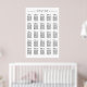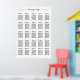 Bis zu 25 Tabellenlayout, nach Tischnummer, nicht nach Namen, mit bis zu 12 Personen pro Tisch. Ein einfaches schwarz-weißes Sitzdiagramm; klicken Sie auf "Anpassen", um Spalten zu verschieben, Schriftart, Farben, Hintergrundfarbe oder Postergröße zu ändern. Weißer Text auf farbigen Versionen auch verfügbar. Klicken Sie auf und ziehen Sie die Tabellen (beginnend von der Seite), um mehrere Tabellen gleichzeitig zu verschieben.