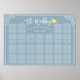 25 Tables blaues Blumenmuster Hochzeitsdiagramm Poster
