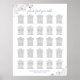 Diese schöne Hochzeitskarte beinhaltet Tischbelegungen für 250 Gäste mit 10 Gästen pro Tisch. Das Design ist einfach und dennoch elegant mit dunkelgrauem und hellblauen Text auf weißem Hintergrund mit silberfarbenen Imitaten mit floralen Filigranfarben in den Ecken und Kalligraphie-Script-Lesen: bitte finden Sie Ihren Tisch. Eine ausgezeichnete Möglichkeit, Ihrem Empfang eine Klasse hinzuzufügen und es Ihren Gästen zu erleichtern, ihre Sitzplätze zu finden.