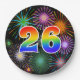 Dieses fröhliche, farbenfrohe und lustige Papier-Platte-Design verfügt über eine große Zahl "26" mit einem Regenbogenspektrum inspirierte Muster-Färbung. Es zeichnet sich auch durch ein lebendiges und aufregendes Feuerwerk inspiriert. Der Hintergrund ist schwarz. Teller wie diese können bei einem Party zum 26. Geburtstag von jemandem, zum 26. Jahrestag oder zu einem anderen sechsundzwanzigsten Ereignis genutzt werden. [~Z0000490]