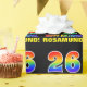 Dieses fröhliche, lustige und farbenfrohe Geburtstagsdesign zeigt eine große Zahl "26" und die Meldung "HAPPY BIRTHDAY", beide mit einem inspirierten Regenbogenspektrum-Farbverlauf, zusammen mit einem kühnen gelben, anpassbaren Empfängernamen. Der Hintergrund ist schwarz. So ein Geburtstagsthema könnte dazu verwendet werden, ein Geschenk oder Geschenk für jemanden zu verpacken, der seinen 26. Geburtstag feiert. [~Z0000475]