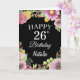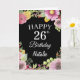 26. Geburtstag Wasserfarben Blume Schwarze Karte mit personalisiertem Namen und Alter. Für weitere Anpassungen klicken Sie bitte auf die Schaltfläche "Anpassen" und verwenden Sie unser Designwerkzeug, um diese Vorlage zu ändern.