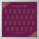 Dieses wunderschöne Hochzeitssitzdiagramm zeigt Goldtexte auf einem magentafarbenen oder kaskadenförmigen lila Hintergrund mit Sitzplätzen für 260 Gäste - 26 Tische mit 10 Sitzplätzen pro Tisch. Es zeichnet sich durch ein schlichtes, aber stilvolles und elegantes Design mit verzierten dekorativen Imitaten aus, die goldene Filigree in den Ecken verflechten. Der Titel ist in extravaganter Skriptkalligrafie geschrieben und lautet: Bitte finden Sie Ihre Tabelle.