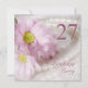 Ein wunderschönes zartes Bild von Gänseblüten in sanften rosa Tönen. Im Hintergrund ist eine Perlenkette. Der ganze Effekt ist weich und altmodisch. Eine schöne 27. Geburtstagsfeier. Ändern Sie den Rücken in Ihre eigenen Party-Details