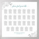 Diese schöne Hochzeitssitzkarte bietet Platz für 27 Tische mit 10 Sitzplätzen pro Tisch oder 270 Personen. Es zeichnet sich durch ein schlichtes und dennoch elegantes Design aus, mit dunkelgrauem und aquamarinem oder türkisfarbenem Text auf weißem Hintergrund und zartem, dekorativem Imitat mit silbernen Filigree in den Ecken. Der Titel ist in extravaganter Skriptkalligrafie geschrieben und lautet: Bitte finden Sie Ihre Tabelle. Stilvoll und raffiniert!