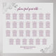 Diese schöne Hochzeitssitzkarte bietet Platz für 27 Tische mit 10 Sitzplätzen pro Tisch oder 270 Personen. Es zeichnet sich durch ein schlichtes und dennoch elegantes Design aus, mit lila oder magentafarbenem Pflaumenmuster auf grauem Hintergrund und zartem dekorativem Imitat mit silbernen Filigree in den Ecken. Der Titel ist in extravaganter Skriptkalligrafie geschrieben und lautet: Bitte finden Sie Ihre Tabelle. Stilvoll und raffiniert!