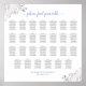 This beautiful wedding seating chart has seating assignments for 27 table at 10 seats per table or 270 guests. It feature a simple yet elegant design with dark gray and light blue text on a white background and lacy decorative fälschung foil silver filigree in the corners. The title is written in fancy script calligraphy and reads: Please find your table. Stylish and sophisticated!