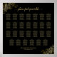 Diese schöne Hochzeitssitzkarte bietet Platz für 27 Tische mit 10 Sitzplätzen pro Tisch oder 270 Personen. Es zeichnet sich durch ein schlichtes und dennoch elegantes Design aus, mit goldenem Text auf schwarzem Hintergrund und zartem dekorativem Imitat mit goldenen Filigree in den Ecken. Der Titel ist in extravaganter Skriptkalligrafie geschrieben und lautet: Bitte finden Sie Ihre Tabelle. Stilvoll und raffiniert!