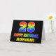 Die Vorderseite dieser fröhlichen, farbenfrohen und lustigen Geburtstagskarte zeigt eine große Zahl "28" und die Meldung "HAPPY BIRTHDAY", beide mit einem inspirierten Regenbogenspektrum-Farbverlauf, zusammen mit einem kühnen gelben, anpassbaren Empfängernamen. Die Vorderseite ist mit einem minimalistisch schwarzen Hintergrund versehen. Die Innenseite verfügt über eine benutzerdefinierte Geburtstagsgrüßbotschaft oder könnte gelöscht und leer verlassen werden, wenn eine Nachricht von Hand geschrieben werden soll. Eine fröhliche personalisierte Geburtstagskarte wie diese könnte eine lustige Art sein, eine Nachricht zu senden, die jemandes achtundzwanzigsten Geburtstag feiert. [~Z0000472]
