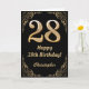 28. Geburtstag Schwarz und Gold Glitzer Rahmen Karte