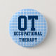 Fördern Sie Beschäftigungstherapie mit diesem 2,25" weißer und blauer gemusterter Knopf mit dunkelblauem Text.