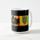 Diese große Keramik-Tasse kennzeichnet das Vietnam-Service-Medaillen-Band als Hintergrund, nach dem eine Bahn-Silhouette mit den gekreuzten Gewehrinsignien des Bataillons ist. Das M113 wird durch den Einheits-Wappen- und -abteilungsflecken angegrenzt. Sie können Tassenarten und -farben ändern und addieren Text, wenn Sie wünschen.