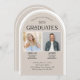 Diese klassische Gewölbe Top Abschluss Einladung bietet ein Design speziell für zwei Absolventen. Die Einladung ist perfekt für Bruder und Schwester, Zwillinge oder Freunde. Die Rückseite bietet Platz für ein zusätzliches horizontales Foto und zusätzlichen Text.