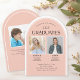 Dieses hellorange, klassisch gewölbte Top-Abschluss-Angebot ist speziell für zwei Absolventen konzipiert. Die Einladung ist perfekt für Bruder und Schwester, Zwillinge oder Freunde. Die Rückseite bietet Platz für ein zusätzliches horizontales Foto und zusätzlichen Text.