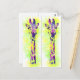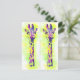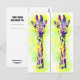 Ein Aquarellportrait einer Giraffe, die in fröhlichen Farben von lila, gelben und Grüntönen gemacht wird. Man bekommt zwei Buchmarkierungen für den Preis von einem, schneidet sie einfach in der Mitte auseinander. Es gibt einen Ort auf der Rückseite, um deinen Namen zu schreiben.