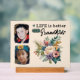 Brillieren Sie Ihren Raum mit unserem hübschen, blühenden Acrylzeichen, das in schwarzem Text "Das Leben ist besser mit den Großkindern" steht. Dieses wunderschöne Stück enthält zwei Ihrer Lieblings-Fotos, was es zu einer herzlichen Ergänzung zu jedem Zimmer macht. Das Blumendesign des Schildes ist perfekt für Großeltern, die Liebe haben, ihre bezaubernden Enkel zu präsentieren. Es verleiht ihnen eine Touch von Eleganz und Freude. Es ist auch eine tolle Geschenkidee, die jeden Tag Lächeln und warme Erinnerungen mitbringt. Machen Sie Ihre Zuhause cozier mit dieser schönen und personalisierten Hommage an die Freuden der Enkel haben! Pfirsich / Schwarz / Grün