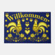 2 Folk Roosters, Gold/Blau Willkommen, willkommen Fußmatte