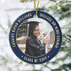 Erinnern Sie sich an den Erfolg des Absolventen mit einem eleganten marineblauen und goldenen Brauch zwei Foto rund Abschluss Weihnachtsschmuck. Bilder und Text sind einfach zu verändern und können auf Vorder- und Rückseite unterschiedlich sein. Beinhaltet ein beliebtes inspirierendes Zitat, motivierend Sprichwort, Schulname und -abschluss, Glückwünsche, vielen Dank an Mama und Papa, oder eine andere Botschaft Ihrer Wahl. Das Design umfasst eine marineblaue Grenze, einen personalisierten modernen Typografiennamen, ein Schuljahr und ein Klassenzimmer in einem Kreis sowie zwei Fotos des Absolventen, wie Seniorenbilder oder Bilder aus der Anlauffeier. Bitte beachten Sie, dass Gold farblich gedruckt ist, nicht metallische Folie. Macht einen nachdenklichen Abschluss Geschenkidee.