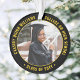 Erinnern Sie sich an den Erfolg des Absolventen mit einem eleganten schwarz-goldgelben Brauch zwei Foto rund Abschluss Weihnachtsschmuck. Bilder und Text sind einfach zu verändern und können auf Vorder- und Rückseite unterschiedlich sein. Beinhaltet ein beliebtes inspirierendes Zitat, motivierend Sprichwort, Schulname und -abschluss, Glückwünsche, vielen Dank an Mama und Papa, oder eine andere Botschaft Ihrer Wahl. Das Design zeichnet sich durch eine schwarze Grenze, personalisierte moderne Typografie-Name, Schule & Klasse Jahr in einem Kreis, und 2 Fotos des Absolventen, wie Seniorenbilder oder Bilder aus der Anlauffeier. Macht einen nachdenklichen Abschluss Geschenkidee.