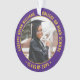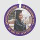 Erinnern Sie sich an den Erfolg des Absolventen mit einem eleganten lila und goldgelben Brauch zwei Foto rund Abschluss Weihnachtsschmuck. Bilder und Text sind einfach zu verändern und können auf Vorder- und Rückseite unterschiedlich sein. Beinhaltet ein beliebtes inspirierendes Zitat, motivierend Sprichwort, Schulname und -abschluss, Glückwünsche, vielen Dank an Mama und Papa, oder eine andere Botschaft Ihrer Wahl. Design zeichnet sich durch eine grüne Grenze, personalisiert moderne Typografie-Name, Schule & Klasse Jahr in einem Kreis, und 2 Fotos des Absolventen, wie Senioren-Bilder oder Bilder aus der Anfänge Zeremonie. Macht einen nachdenklichen Abschluss Geschenkidee.