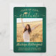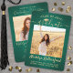 Teilen Sie die Freude eines Gymnasiums oder Uni-Abschlusses und laden Sie Familie und Freunde ein, mit diesen individuellen 2 Foto Grün und Gold Party Einladungen zu feiern. Alle Bilder und Texte sind einfach zu personalisieren. (IMAGE PLACEMENT TIP: Eine einfache Möglichkeit, ein Bild genau so zu zentrieren, wie Sie es gewollt haben, ist es, es einzuschneiden, bevor Sie es auf die Zazzle-Website hochladen.) Diese Vorlage ist für eine Graduierungsparty formatiert, kann aber einfach als offene Haus Einladung oder Ankündigungskarte angepasst werden. Ändern Sie einfach den Text, um alle Details Ihrer Wahl, wie z.B. die Namen der Eltern, besondere Ehren, Studientitel, Lieblings-inspirierendes Zitat, die Pläne des Absolventen oder neue Adresse. Wenn ein Text nicht gewollt ist, löschen Sie ihn einfach. Das Design zeichnet sich durch einen grün gebürsteten Hintergrund, eine Mütze aus Imitat, handgeschriebene Schrift-Kalligraphie, moderne minimalistische Typografie und zwei Fotos Ihrer Wahl aus, wie Seniorenbilder oder Bilder aus der Anlaufzeremonie. Bitte beachten Sie, dass Gold farblich gedruckt ist, nicht metallische Folie. Diese eleganten Ankündigungskarten für Abschlüsse sind eine stilvolle Möglichkeit, Ihre Feier mit Freunden und Familie zu teilen. Herzlichen Glückwunsch an den Absolventen!