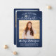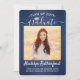 Teilen Sie die Freude an einer High School oder Uni-Abschluss mit diesen benutzerdefinierten 2 Foto Marineblau, Weiß und Silber Ankündigungen. (IMAGE PLACEMENT TIP: Eine einfache Möglichkeit, ein Bild genau so zu zentrieren, wie Sie es gewollt haben, ist es, es einzuschneiden, bevor Sie es auf die Zazzle-Website hochladen.) Dieses Template enthält den Namen des Absolventen, das Jahrgang und die Schule. Es ist einfach, sich nach Ihren Wünschen anzupassen, z. B. Party Einladungen, Eltern-Namen, Sonderehren, Studientitel, Lieblings-inspirierendes Zitat, Kontaktinformationen des Absolventen, künftige Bildungen oder neue Stellenangebote. Wenn ein Text nicht gewollt ist, löschen Sie ihn einfach. Das Design bietet einen dunkelblauen, gebürsteten Hintergrund, eine Mütze aus Imitat, eine handgeschriebene Schrift-Kalligraphie, eine moderne minimalistische Typografie und zwei Fotos Ihrer Wahl, wie z.B. Seniorenbilder oder Aufnahmen aus der Anlaufzeremonie. Bitte beachten Sie, dass der Hintergrund nicht metallisch, sondern farbig ist. Diese eleganten Ankündigungskarten für Abschlüsse sind eine stilvolle Möglichkeit, Ihre Feier mit Freunden und Familie zu teilen. Herzlichen Glückwunsch an den Absolventen!