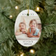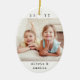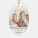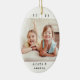 Feiern Sie mit einem stilvollen ovalen 2-Foto-Keramik Weihnachtsschmuck die Urlaubsfreuden. Die Bilder und alle Formulierungen auf dieser Vorlage sind einfach zu personalisieren und können auf Vorder- und Rückseite unterschiedlich oder gleich sein. Die Farben und Stile des Schriftartes lassen sich auch mit dem Zazzle Design Editor Tool leicht anpassen. Das moderne, minimalistische Schwarz-Weiß-Design bietet zwei Bilder Ihrer Wahl und klassische Schreibmaschinentypografie-Namen und Jahr. Erstellen Sie Ihren eigenen einzigartigen Sake für Xmas Zuhause Dekorationen oder geben Sie als schlichtes Geschenk an Familie und Freunde.