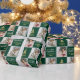 2 Foto Elegant Frohe Weihnachten Gold Grüne Umschlag Papier. Ein festliches Weihnachtswrapping Paper mit Ihren Fotos. Wenn Sie Ihr Foto vor dem Hochladen in ein Quadrat schneiden, wird es leicht sein, das Design zu bearbeiten.