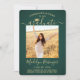 Teilen Sie die Freude eines Gymnasiums oder Uni-Abschlusses mit diesen individuellen 2 Foto Grün- und Goldankündigungen. (IMAGE PLACEMENT TIP: Eine einfache Möglichkeit, ein Bild genau so zu zentrieren, wie Sie es gewollt haben, ist es, es einzuschneiden, bevor Sie es auf die Zazzle-Website hochladen.) Diese Vorlage ist einfach mit jedem beliebigen Wortlaut Ihrer Wahl, wie z. B. Party Einladung, Eltern-Namen, Sonderehren, Studientitel, bevorzugten inspirierenden Zitat, Kontaktinformationen für Absolventen, künftige Bildungen oder neue Stellenangebote, anzupassen. Wenn ein Text nicht gewollt ist, löschen Sie ihn einfach. Das Design zeichnet sich durch einen grünen Hintergrund aus, Imitat-Folie mit Mörtel, handgeschriebene Schrift-Kalligraphie, moderne minimalistische Typografie und zwei Fotos Ihrer Wahl aus, wie Seniorenbilder oder Bilder aus der Anlaufzeremonie. Bitte beachten Sie, dass Gold farblich gedruckt ist, nicht metallische Folie. Diese eleganten Ankündigungskarten für Abschlüsse sind eine schicke und trendige Art, Ihre Feier mit Freunden und Familie zu teilen. Herzlichen Glückwunsch an den Absolventen!