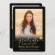Teilen Sie die Freude an einer High School oder Uni-Abschluss mit diesen individuellen 2 Foto Schwarz-Gold Ankündigungen. Alle Bilder und Texte sind einfach zu personalisieren. (IMAGE PLACEMENT TIP: Eine einfache Möglichkeit, ein Foto genau so zu zentrieren, wie Sie es gewollt haben, ist es, es einzuschneiden, bevor Sie es auf die Zazzle-Website hochladen.) Diese Vorlage ist einfach mit jedem beliebigen Wortlaut Ihrer Wahl, wie z. B. Party Einladung, Eltern-Namen, Sonderehren, Studientitel, bevorzugten inspirierenden Zitat, Kontaktinformationen für Absolventen, künftige Bildungen oder neue Stellenangebote, anzupassen. Wenn ein Text nicht gewollt ist, löschen Sie ihn einfach. Das Design besticht durch eine goldgeflochtene Bretterkappe, handgeschriebene Schreibkalligraphie, moderne minimalistische Typografie und zwei Fotos Ihrer Wahl, wie Seniorenbilder oder Bilder aus der Anlaufzeremonie. Diese eleganten Ankündigungskarten für Abschlüsse sind eine schicke und trendige Art, Ihre Feier mit Freunden und Familie zu teilen. Herzlichen Glückwunsch an den Absolventen!