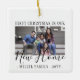 Feiern Sie die Freude an Ihrem neuen Ort mit einem maßgeschneiderten 2-Foto "Erste Weihnachten in unserem neuen Zuhause" Schwarz-Weiß-Keramik-Ornament. Text und Bilder auf dieser Vorlage sind einfach zu personalisieren. (IMAGE PLACEMENT TIP: Eine einfache Möglichkeit, ein Foto genau so zu zentrieren, wie Sie es gewollt haben, ist es, es einzuschneiden, bevor Sie es auf die Zazzle-Website hochladen.) Das Design bietet moderne handgeschriebene Skriptkalligraphie, minimalistische Schreibmaschinentypografie, Familienname und Jahr, und zwei Bilder Ihrer Wahl. Dieser einzigartige Familiensaft fügt den Xmas Zuhause-Dekorationen eine stilvolle Touch hinzu oder macht eine nachdenkliche Hauswärme-Geschenkidee. Es gibt keinen Ort wie eine neue Zuhause für die Ferien!