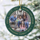 Feiern Sie die einfachen Freuden der Ferien mit einem maßgeschneiderten Keramik mit zwei Foto Grün und Gold. Alle Texte und Bilder auf dieser Vorlage sind einfach zu personalisieren und können auf Vorder- und Rückseite unterschiedlich oder gleich sein. Wenn gewünscht, ändern Sie "Peace Liebe Joy Merry Christmas" zu einem beliebigen Zitat oder Sprichwort. (IMAGE & TEXT DESIGN TIPS: 1) Um die Position der Formulierung anzupassen, fügen Sie Leerzeichen am Anfang oder Ende. 2) Um das Foto genau so zu zentrieren, wie Sie gewollt haben, schneiden Sie es quadratisch aus, bevor Sie es auf die Zazzle-Website hochladen.) Das moderne minimalistische Design besticht durch eine grüne Grenze, stilvolle Typografie mit Namen und Jahr und 2 Bilder Ihrer Wahl. Dieser einzigartige Familienkeepake fügt Xmas Zuhause Dekorationen eine elegante Touch hinzu. Bitte beachten Sie, dass Gold farblich gedruckt ist, nicht metallische Folie.