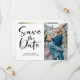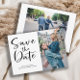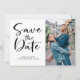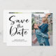 Moderne 2 Foto Hochzeit Speichern Sie die Date-Karte mit Text in einem modernen Bürstenskript-Schriftart. Lass Freunden und Familie kennen dein Date und wo du heiraten wirst, damit sie anfangen können, Pläne zu machen.