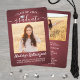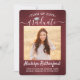 Teilen Sie die Freude eines Gymnasiums oder Uni-Abschlusses mit diesen individuellen 2 Foto Rot-, Weiß- und Silberankündigungen. (IMAGE PLACEMENT TIP: Eine einfache Möglichkeit, ein Bild genau so zu zentrieren, wie Sie es gewollt haben, ist es, es einzuschneiden, bevor Sie es auf die Zazzle-Website hochladen.) Dieses Template enthält den Namen des Absolventen, das Jahrgang und die Schule. Es ist einfach, sich nach Ihren Wünschen anzupassen, z. B. Party Einladungen, Eltern-Namen, Sonderehren, Studientitel, Lieblings-inspirierendes Zitat, Kontaktinformationen des Absolventen, künftige Bildungen oder neue Stellenangebote. Wenn ein Text nicht gewollt ist, löschen Sie ihn einfach. Das Design umfasst einen bordeauxroten, gebürsteten Hintergrund, eine Mütze aus Imitat, eine handgeschriebene Schriftzeichen-Kalligraphie, eine moderne minimalistische Typografie und zwei Fotos Ihrer Wahl, wie z.B. Seniorbilder oder Bilder aus der Antrittsfeier. Bitte beachten Sie, dass der Hintergrund nicht metallisch, sondern farbig ist. Diese eleganten Ankündigungskarten für Abschlüsse sind eine stilvolle Möglichkeit, Ihre Feier mit Freunden und Familie zu teilen. Herzlichen Glückwunsch an den Absolventen!