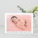 Moderne Geburtsankündigung für Fotos. Benutzen Sie diese Vorlage, um Ihr eigenes Foto auf der Vorderseite UND Rückseite der Karte hinzuzufügen; von Ihrem eigenen süßen Baby und personalisieren Sie mit dem Namen des Babys in der eleganten trendigen Schrift Typografie.
