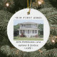 Feiern Sie die Freude an Ihrem neuen Ort mit einem maßgeschneiderten 2-Foto "Unsere erste Zuhause" rund Keramik Weihnachtsschmuck. Aufnahme und Bilder auf dieser Vorlage sind einfach zu personalisieren, und können auf Vorder- und Rückseite unterschiedlich oder gleich sein. Das Design besticht durch eine moderne, minimalistische schwarz-weiße Grenze, stilvolle Schreibmaschinentypografie-Namen & Jahr und zwei Bilder Ihrer Wahl. Dieser einzigartige Familiensaft fügt den Xmas Zuhause-Dekorationen eine stilvolle Touch hinzu oder macht eine nachdenkliche Hauswärme-Geschenkidee. Es gibt keinen Ort wie eine neue Zuhause für die Ferien!