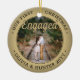 Feiern Sie den fröhlichen 1. Urlaub Ihrer Verlobung mit einem maßgeschneiderten 2-Foto "Unser erstes Weihnachtsfest Verlobt" Rund-Keramik-Ornament in Schwarz und Gold. Alle Texte und Bilder auf dieser Vorlage sind einfach zu personalisieren und können auf Vorder- und Rückseite unterschiedlich oder gleich sein. (IMAGE & TEXT DESIGN TIPS: 1) Um die Position der Formulierung anzupassen, fügen Sie Leerzeichen am Anfang oder Ende. 2) Um das Foto genau so zu zentrieren, wie Sie gewollt haben, schneiden Sie es quadratisch aus, bevor Sie es auf die Zazzle-Website hochladen.) Als Idee kann die Schriftzeichen "Together" oder "Verheiratet" lesen. Das Design besticht durch stilvolle goldene Imitate mit metallischer Folienabdeckung, handgeschriebene Stilkalligraphie, die Namen und das Jahr des Ehepaars und zwei Fotos Ihrer Wahl. Dieser einzigartige und moderne Ehering-Sake fügt Xmas Zuhause Dekorationen eine elegante Touch hinzu. Eine niedliche Geschenkidee für die Braut.