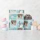 Dieses Weihnachtsgeschenkpapier bietet zwei quadratische Fotorahmen für Ihre Lieblings-Fotos. Der Hintergrund ist ein elegantes, aquamarines Blau mit weißen Schneeflocken und dem handgeschriebenen Stiltext "Joy". Personalisieren Sie diese Geschenkpackung mit Ihren Fotos und Namen.
